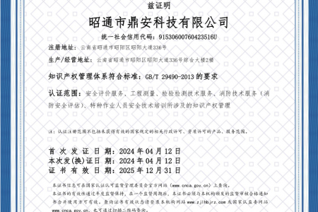 2003年11月10日,昭通市鼎安科技有限公司成立,初始主要從事第三方安全工程技術(shù)服務(wù),經(jīng)多年運營,發(fā)展為多專業(yè)綜合科技平臺,為社會提供多種專業(yè)技術(shù)服務(wù)工作。 現(xiàn)公司注冊資金為1200萬元,公司法定代表人:毛衛(wèi)旭。公司主要業(yè)務(wù):安全評價、安全標準化評審、安全工程技術(shù)服務(wù);環(huán)境監(jiān)測、職業(yè)衛(wèi)生檢測、檢驗;法律訴訟及非訴訟服務(wù);司法鑒定、固定資產(chǎn)投資項目節(jié)能服務(wù);工程咨詢;工程測量測繪;安全教育培訓(xùn)等。是安全生產(chǎn)服務(wù)、安全教育培訓(xùn)機構(gòu),也是環(huán)境監(jiān)測和職業(yè)衛(wèi)生服務(wù)機構(gòu),同時也是綜合的檢測檢驗、綜合科技平臺服務(wù)機構(gòu)。多年來為公、檢、法、司、軍、警、海關(guān)、仲裁、安監(jiān)、工礦商貿(mào)企業(yè)、社會團體及個人提供多專業(yè)技術(shù)服務(wù)。